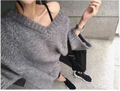 【新作】【送料無料】 2020年秋Vネックオーバーサイズセーターオフショルダーレディースニットプルオーバーセーター原宿レイジーオーフルーズブラウスデフリオ かわいい Feminine189137977153 | Feminine