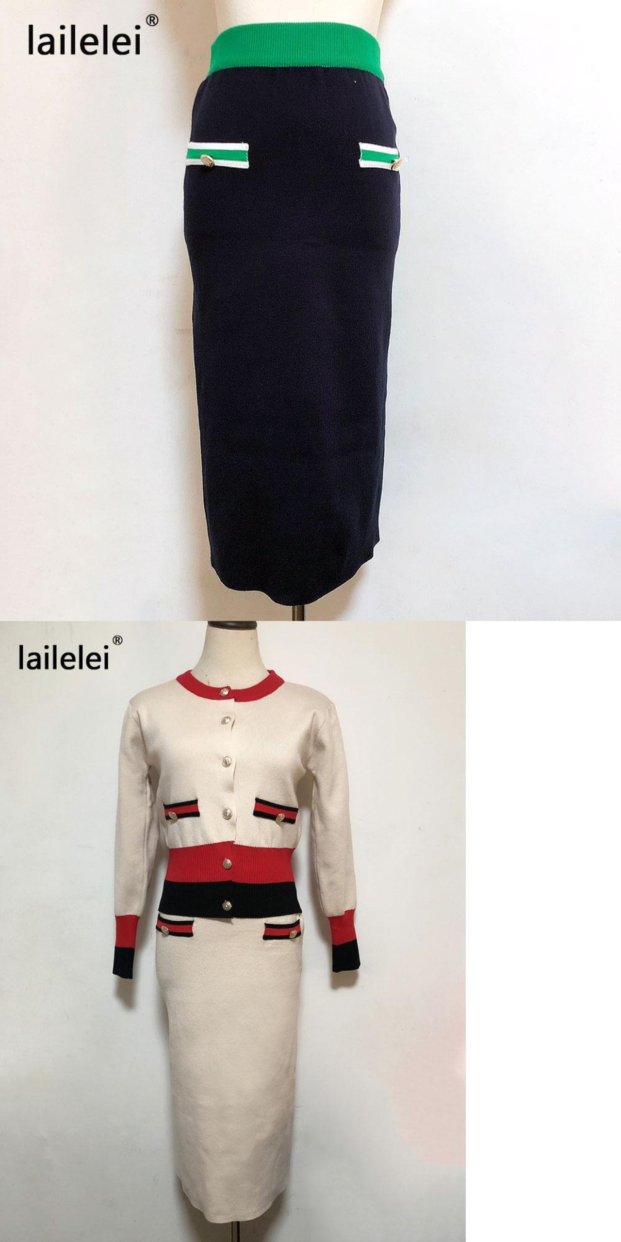 【新作】【送料無料】 ボタン2ピーススカートセットTricotMiddle Abrigos mujer Vestidosesセータードレス秋ネイビーブルーレディースカーディガン長袖 ロング Feminine178922385291 | Feminine