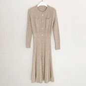 【新作】【送料無料】 ニットレディースドレス秋のプリーツミディドレスボタンセーターシックなオフィスレディスカートニットスリムスリミングボディコンローブ オータム 秋物 会社 学校 通勤や通学にも Feminine185169934490 | Feminine