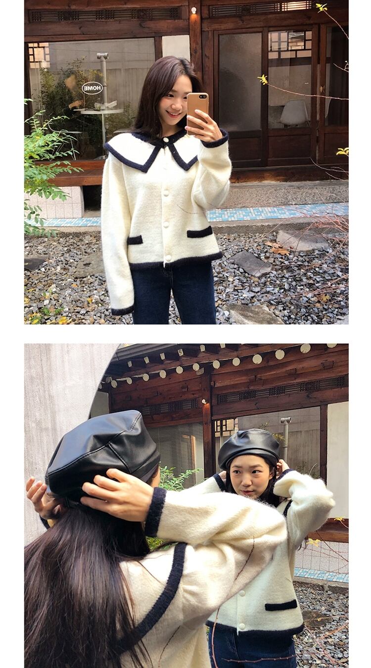 【新作】【送料無料】 Women Sweater Chic TurnDown-カラーニットカーディガン2020年秋ヴィンテージスタイル女性クロップドセーターKarajukuveste femm オータム 秋物 ビンテージ Feminine170978310286 | Feminine