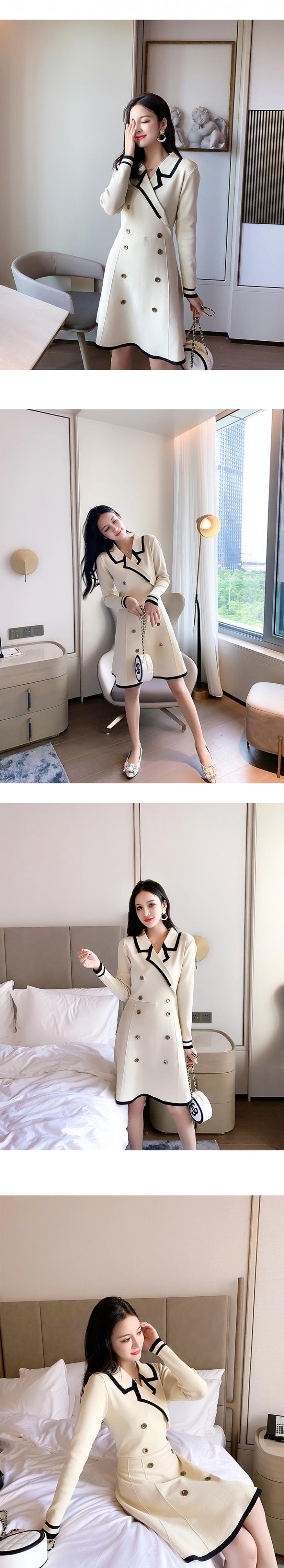 【新作】【送料無料】 ボタンVネック長袖ニットパーティードレス女性秋フレンチヴィンテージVestidosesプルオーバーローブ ロング オータム 秋物 ビンテージ Feminine143868403365 | Feminine