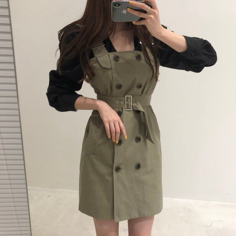 【新作】【送料無料】 ボタンスパゲッティストラップドレスミニローブバンデージオフィスヴィンテージブルーグリーンヴェスティドコルトソリッドロパ2020年秋 ソリッドカラー ビンテージ 会社 学校 通勤や通学にも Feminine18886678128 | Feminine