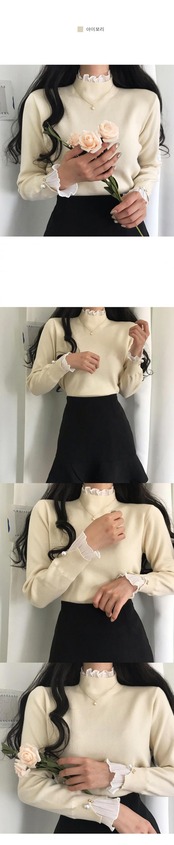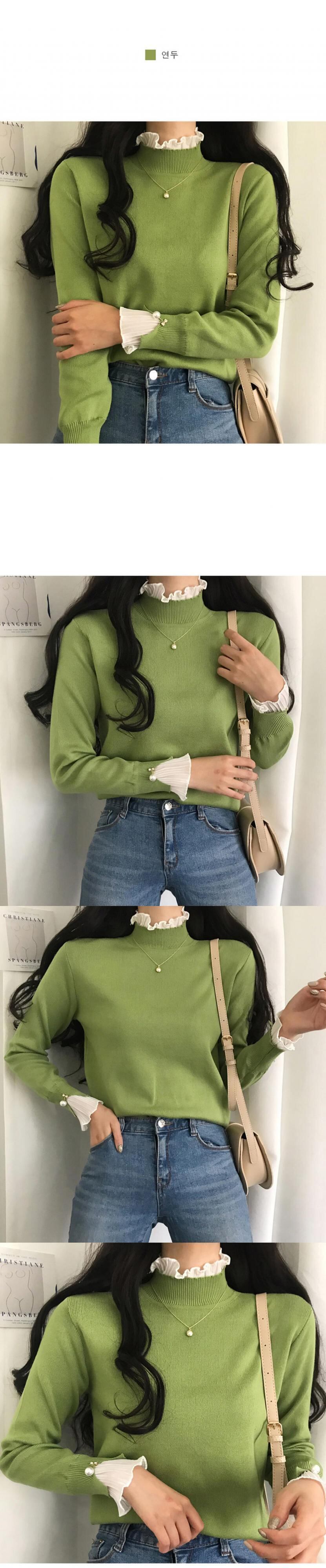【新作】【送料無料】 秋のシックなタートルネックニットシャツ女性レースフレアスリーブリムーバブルパールボタンスタイルSuetersDe Moda 2020 真珠 Feminine177401700108 | Feminine