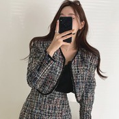 【新作】【送料無料】 フレンチスタイルツイードショートセットヴィンテージジャケットツーピース衣装女性スカートセットパーティードレスブレザークロップトップモーダ ビンテージ Feminine175106244093 | Feminine