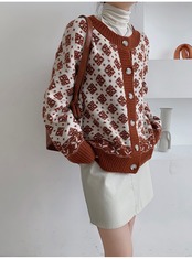 【新作】【送料無料】 白い編みカーディガンセーター女性秋洞怠惰な風が古代の方法を復元するルーズコートハンエディションを表示します ホワイト Feminine112209385288
