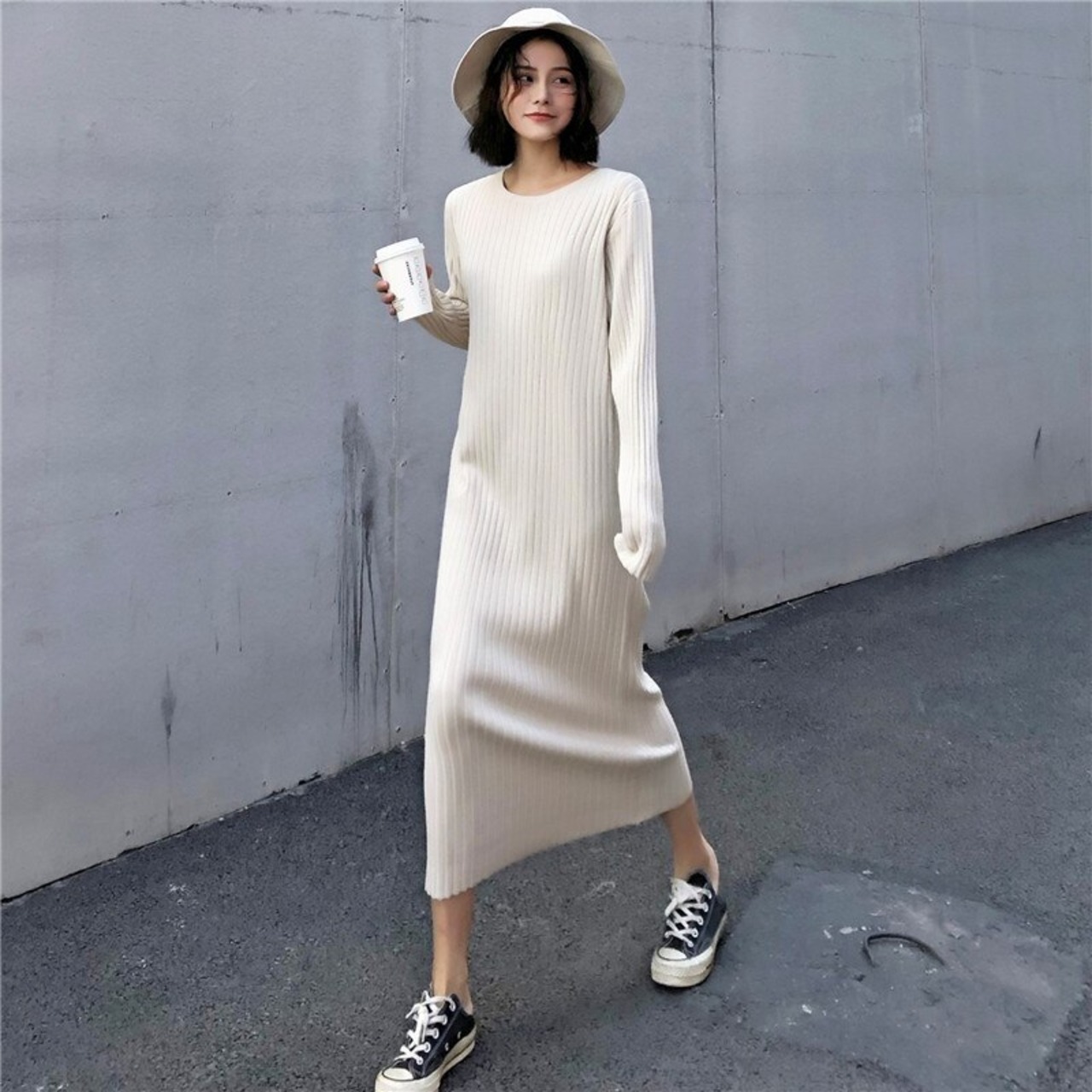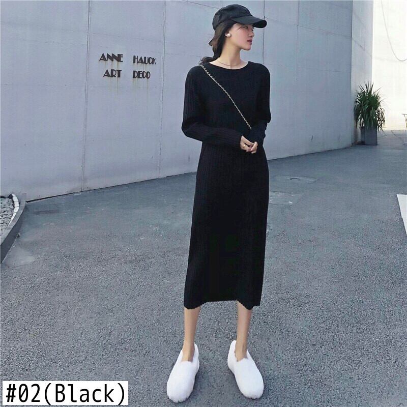 【新作】【送料無料】 Flectitレディースリブニットミディドレス居心地の良い長袖ふくらはぎ丈プレーンセータードレスドレスデイタイムラウンジウェア ロング AL Feminine216818290309 | Feminine