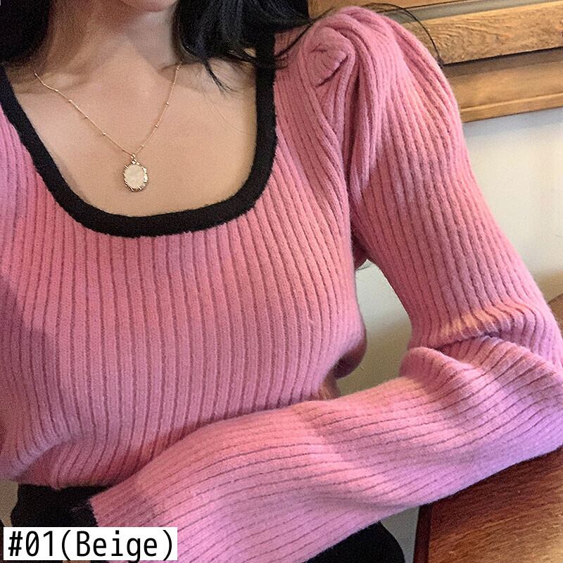 【新作】【送料無料】 スクエアカラートリコットクロップドセータープルオーバーパフスリーブ2020年秋シックなスタイルの女性冬服ブラウステルミカかわいい 大人ガーリー スウィート キュート カジュアル ウィンター 冬物 スクウェア Feminine143432286637 | Feminine