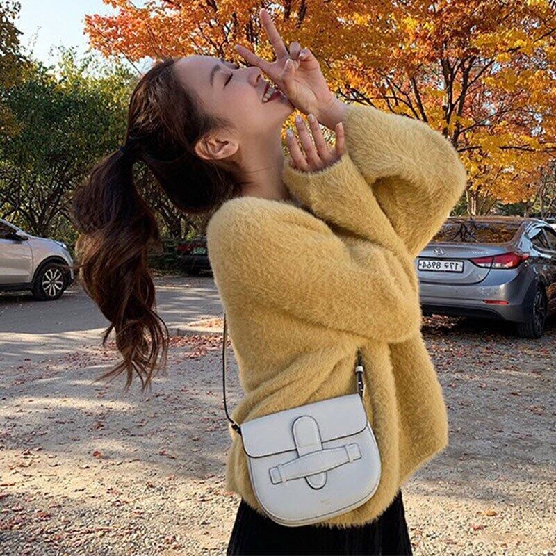 【新作】【送料無料】 Flectit Women's Plain Mohair Sweater Fuzzy Jumper Sweater Loose-fit Pullovers Lazy Knit Top Dusty Blue Pink ピンク ブルー AL Feminine21575611726 | Feminine