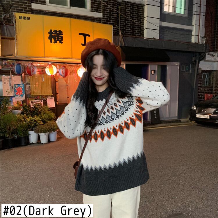 【新作】【送料無料】 フレクティットフェアアイルセーター女性長袖クルーネックコージーニットプルオーバージャンパー秋冬ヴィンテージトップス* ロング ウィンター 冬物 ビンテージ AL Feminine29102224946 | Feminine