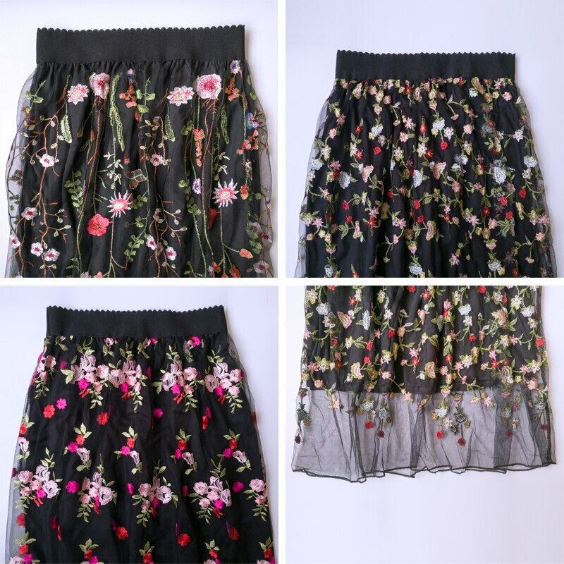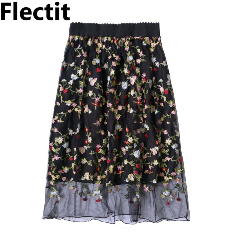 【新作】【送料無料】 FlectitWomenフローラルエンブロイダリーチュールスカートヴィンテージシースルーメッシュミディAラインスカートSaiaFaldas 刺繍 花柄 ビンテージ AL Feminine287188585250 | Feminine