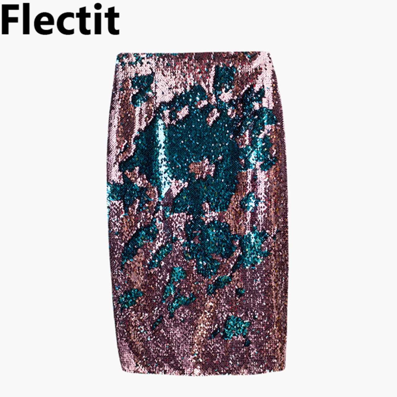 【新作】【送料無料】 Flectitキラキラスパンコールペンシルスカートレディースピーコックピンクセクシーバックスプリットボディコンパーティースカート衣装* AL Feminine221570235862 | Feminine