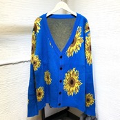 【新作】【送料無料】 Flectitレディースカーディガンセーターひまわりプリント居心地の良いVネックボタンダウンニットトップ秋冬服 ウィンター 冬物 フラワーデザイン AL Feminine298703332874 | Feminine