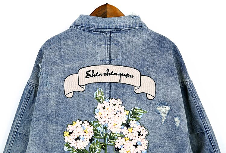 【新作】【送料無料】 フレクティットフラワー刺繍オーバーサイズデニムジャケットレディースヴィンテージウォッシュドデニムジャケットコート* レッド フラワーデザイン ビンテージ AL Feminine268797079806 | Feminine