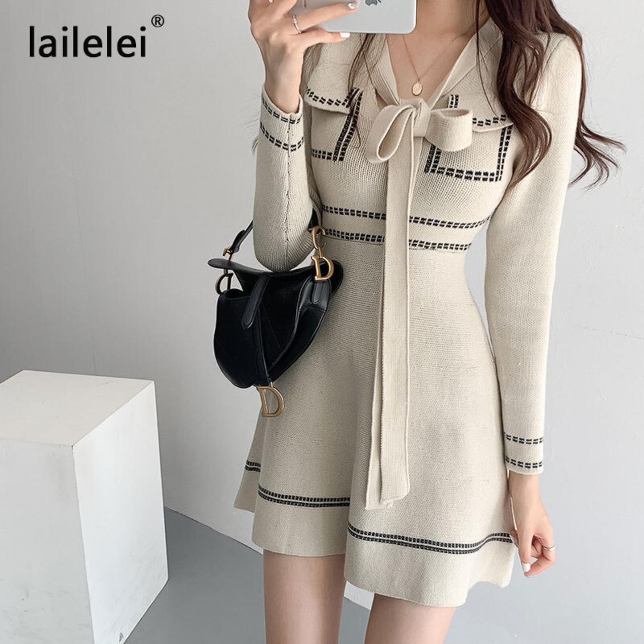 【新作】【送料無料】 ボウニットミニドレス長袖ラインセーターVestidoCortoヴィンテージウィンターブラックオフィスランウェイ2020年秋ローブ ロング 冬物 Aライン ビンテージ 会社 学校 通勤や通学にも Feminine127649267203 | Feminine