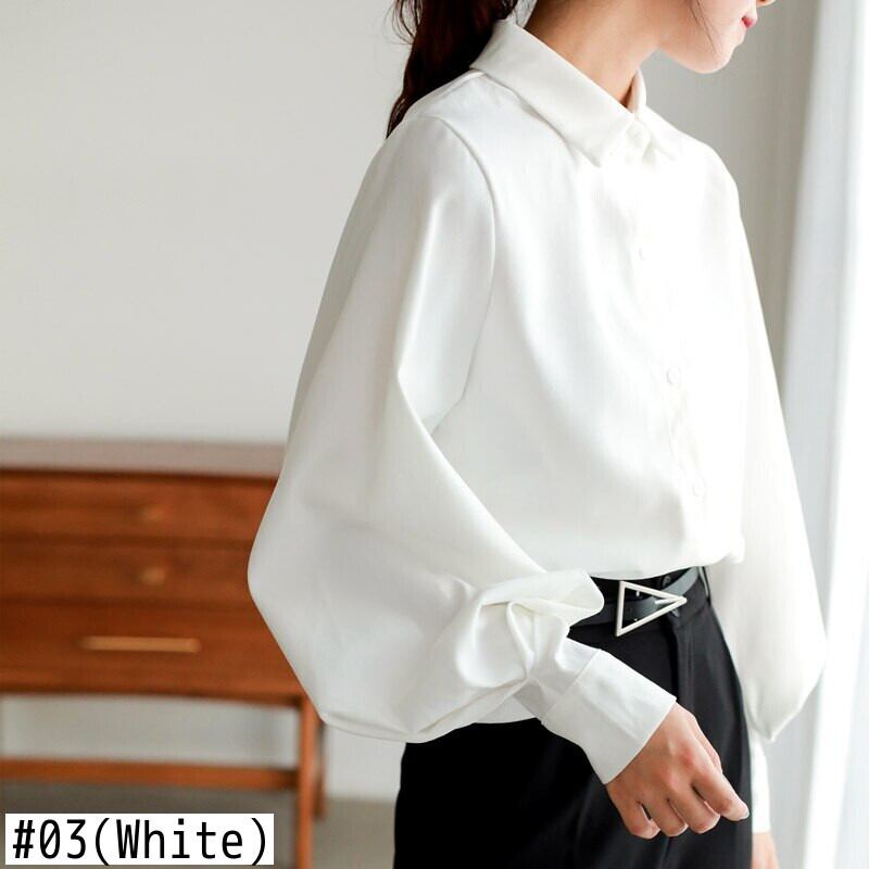 【新作】【送料無料】 Flectitバルーンスリーブブラウスレディーストップスターンダウンカラーボタンフロントブラックホワイトシャツ春夏オフィス衣装* スプリング 春物 サマー 夏物 会社 学校 通勤や通学にも AL Feminine218709234273 | Feminine