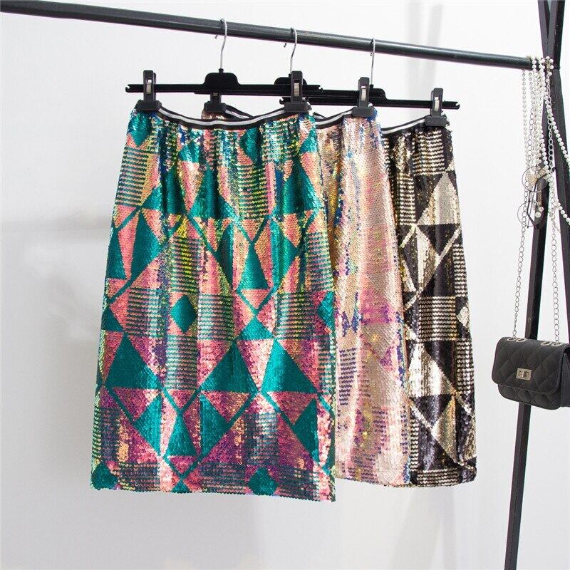【新作】【送料無料】 フレクティット装飾スパンコール幾何学的ミディスカート弾性ウエストセクシークラブパーティーキラキラ衣装レディーススカート エラスティック 伸縮 AL Feminine276753878409 | Feminine