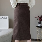 【新作】【送料無料】 Flectit Women Wool Pencil Skirt With Belt Front Split Waist Midi Length Warm Skirt Autumn Winter Outfits * オータム 秋物 ウィンター 冬物 ハーネス ベルト スカート AL Feminine258156476814 | Feminine