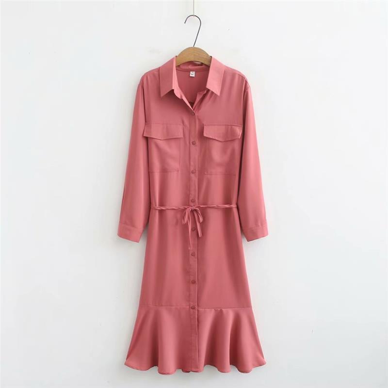 【新作】【送料無料】 セルフタイポケットカラーボタンアップ長袖ドレスビジネスシックな作業服とフレクティット女性マキシシャツドレス* ロング AL Feminine27417572537 | Feminine