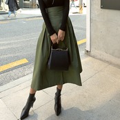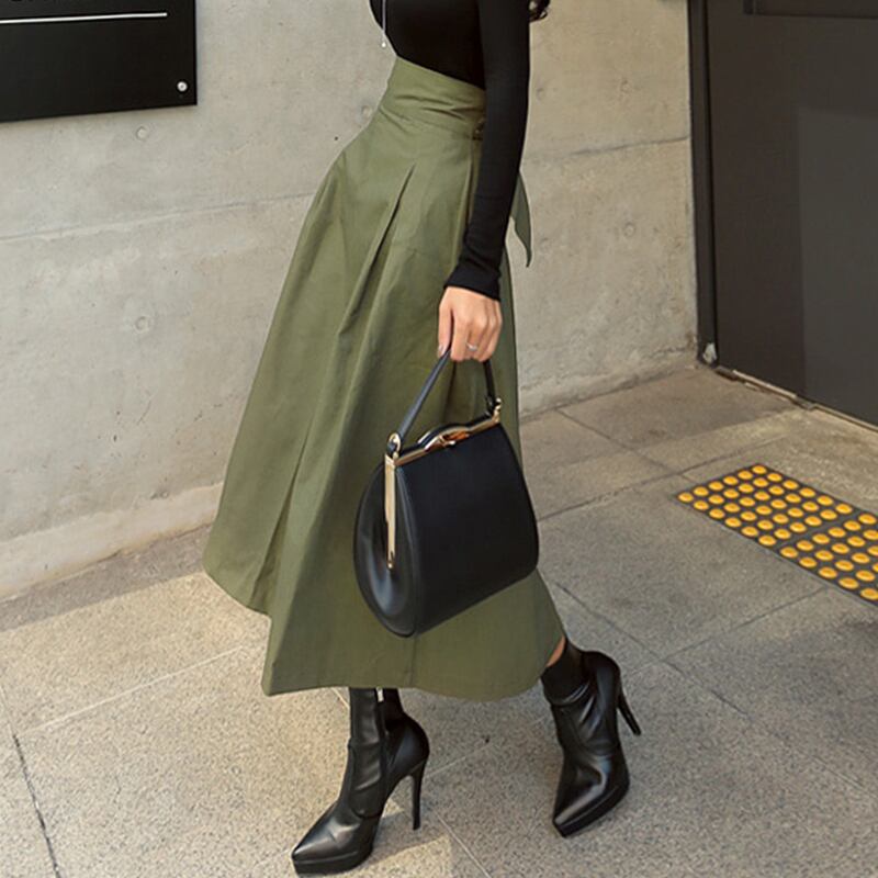【新作】【送料無料】 FlectitArmyGreenウエストミディスカートレディースボウバックAラインフルミディスカートレディース衣装 リボン グリーン AL Feminine219913193224 | Feminine