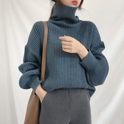 【新作】【送料無料】 Flectitショルダータートルネックリブ編みセーターレディースシータープルオーバーニットトップス秋冬* オータム 秋物 ウィンター 冬物 AL Feminine281422194874 | Feminine
