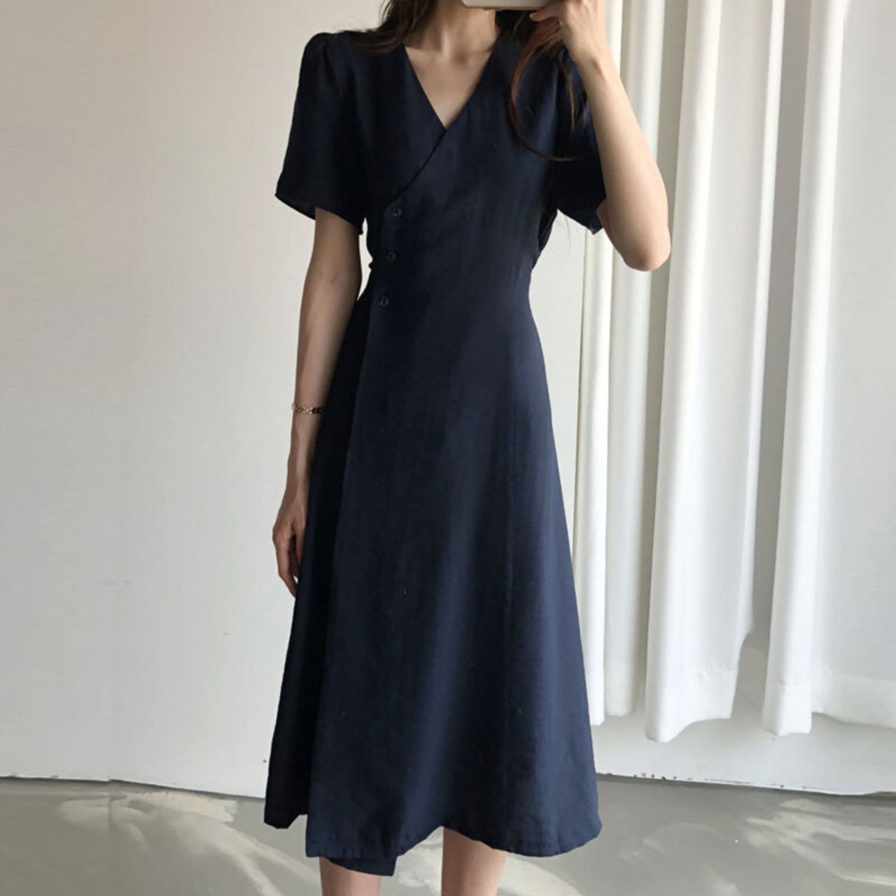 【新作】【送料無料】 Flectiフロントボタンラップミディドレス半袖Vネックスリムドレスレディース2020春夏ドレス* ショート ハーフスリーブ スプリング 春物 サマー 夏物 AL Feminine241495767865 | Feminine