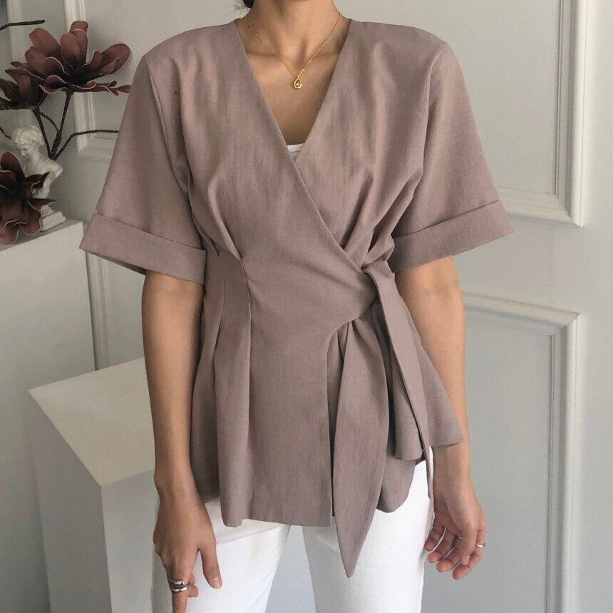 【新作】【送料無料】 フレクティットサイドタイVネックラップトップスレディースブラウスシャツOLオフィスレディスタイルミニマリズム衣装* 会社 学校 通勤や通学にも AL Feminine231941574612 | Feminine