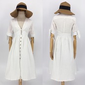 【新作】【送料無料】 Flectit Women Summer Dress Linen Blend Button Down White Dress with Bow V Neck Empire Waist Midi Dress Vacation Outfits * ホワイト リボン サマー 夏物 Vネック AL Feminine211291159343 | Feminine