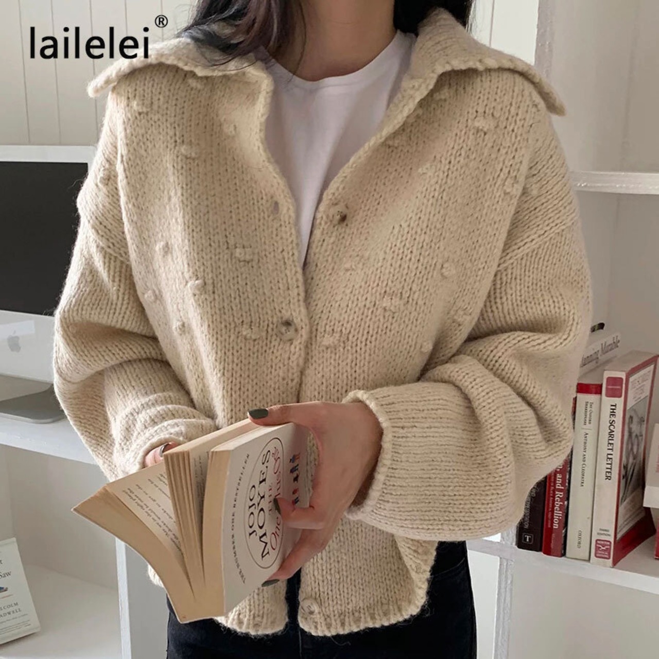 【新作】【送料無料】 厚手のニットカーディガンで古代の風情を復元するシックなラペルシングルブレストジョーカー Feminine154069879488