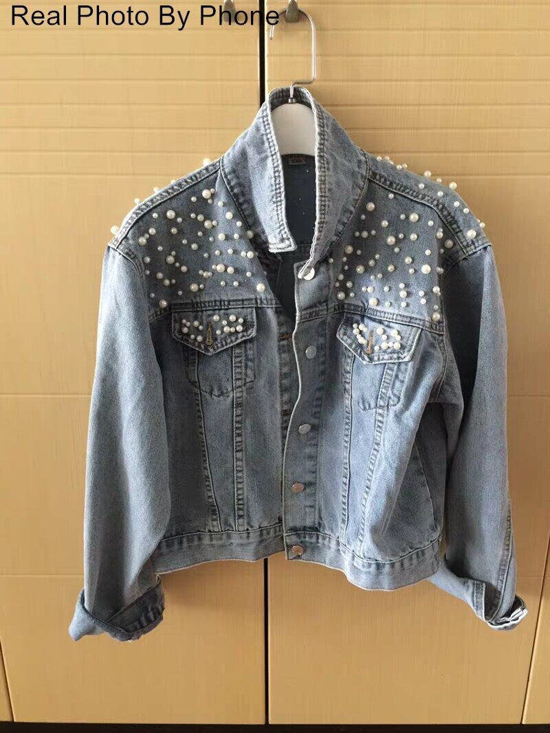 【新作】【送料無料】 Flectit装飾パールジーンズジャケットレディースミッドウォッシュブルーデニム90年代トラッカージャケットプラスサイズS-5XLアウター&コート* 大きめサイズ 真珠 AL Feminine26442553485 | Feminine