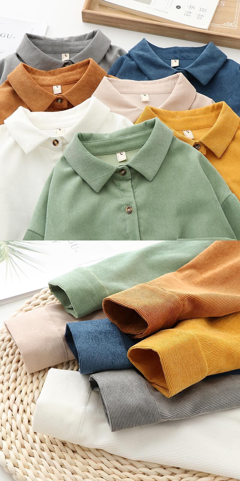 【新作】【送料無料】 Flectitコーデュロイシャツレディース長袖ラペルカラーフロントポケットボタンダウンシャツトップス* ロング AL Feminine268040016788 | Feminine