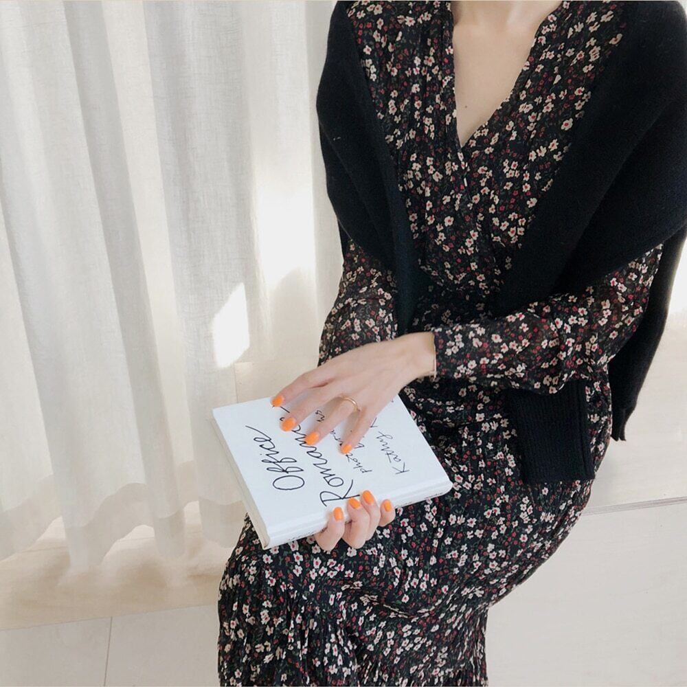 【新作】【送料無料】 Flectit VintageDitsyフローラルプリントドレスシフォンVネック長袖フリル裾スリムロングパーティードレス秋春ビッグサイズ4XL * スプリング 春物 花柄 ビンテージ AL Feminine243485181536 | Feminine
