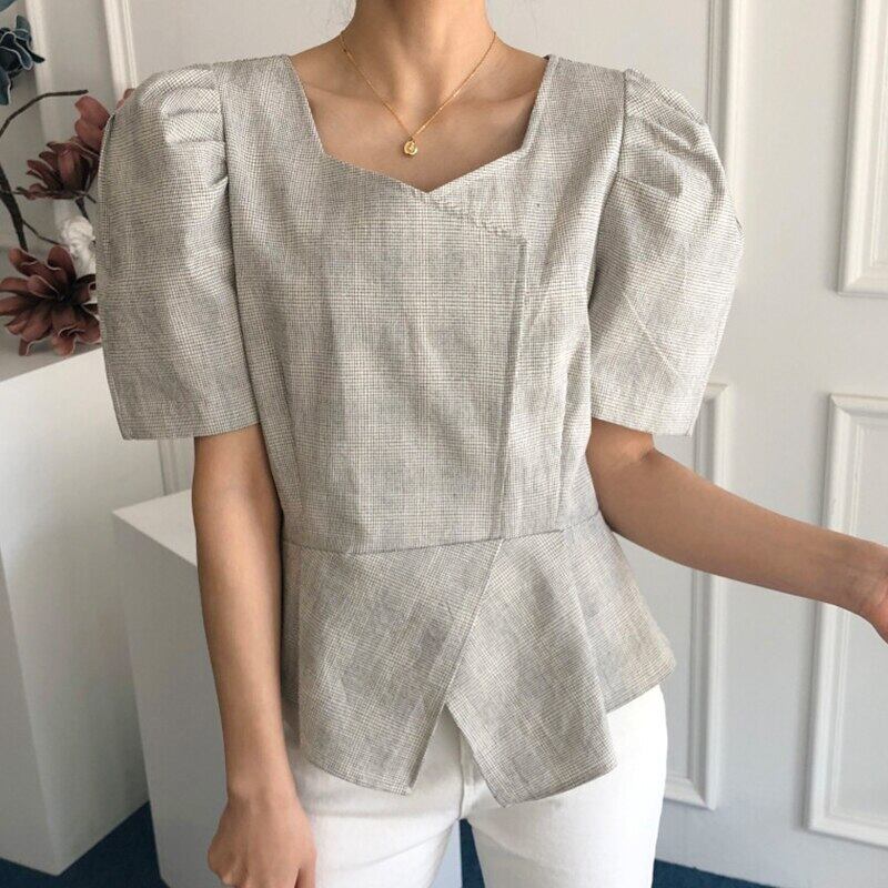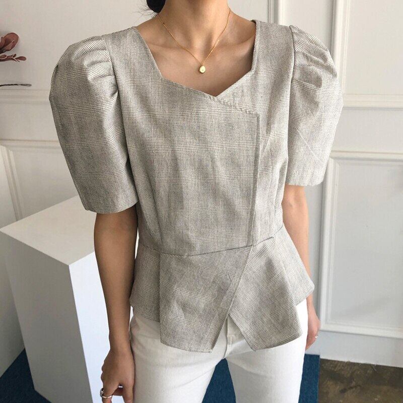 【新作】【送料無料】 フレクティットスクエアネックパフスリーブペプラムトップスレディースブラウスシャツOLオフィスレディキャリアウェア衣装* スクウェア 会社 学校 通勤や通学にも AL Feminine245492211472 | Feminine