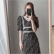 【新作】【送料無料】 パフスリーブレースフローラルドレスシフォンフリルVestidoMidivネック2020年夏ホワイトヴィンテージブラックローブ サマー 夏物 花柄 ビンテージ Feminine162646198039 | Feminine