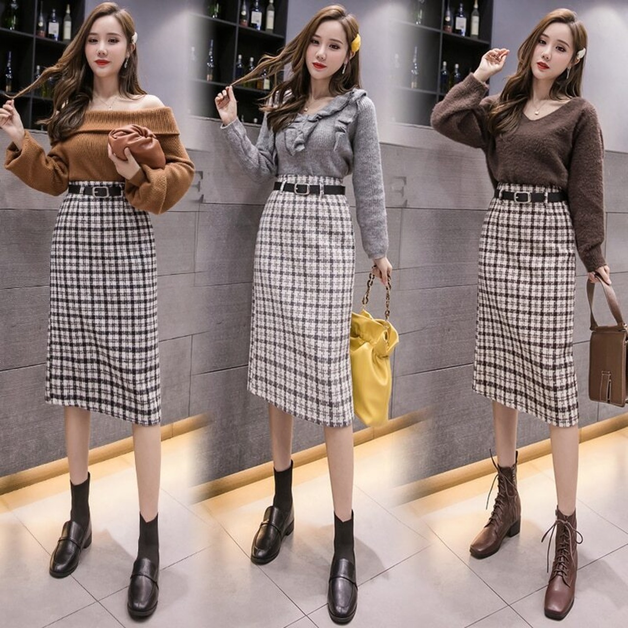 【新作】【送料無料】 Flectit Vintage Plaid Belted Tweed Skirt Women Midi Long Thick Wool Waist A-Line Business Work Outfits * ロング ハーネス ベルト スカート Aライン ビンテージ AL Feminine289325577059 | Feminine