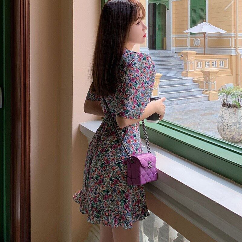 【新作】【送料無料】 フレクティットレディースドレスパフスリーブVネックラフフローラルミニドレススタイルサマードレス* 夏物 花柄 AL Feminine249649301641 | Feminine