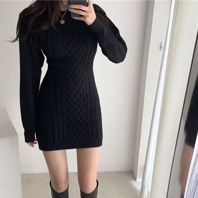 【新作】【送料無料】 バックレスセータードレス女性ミニボディコン長袖セクシーな黒ニット2020年秋VestidosRobe Kleider Damen ロング ブラック Feminine190295031997 | Feminine