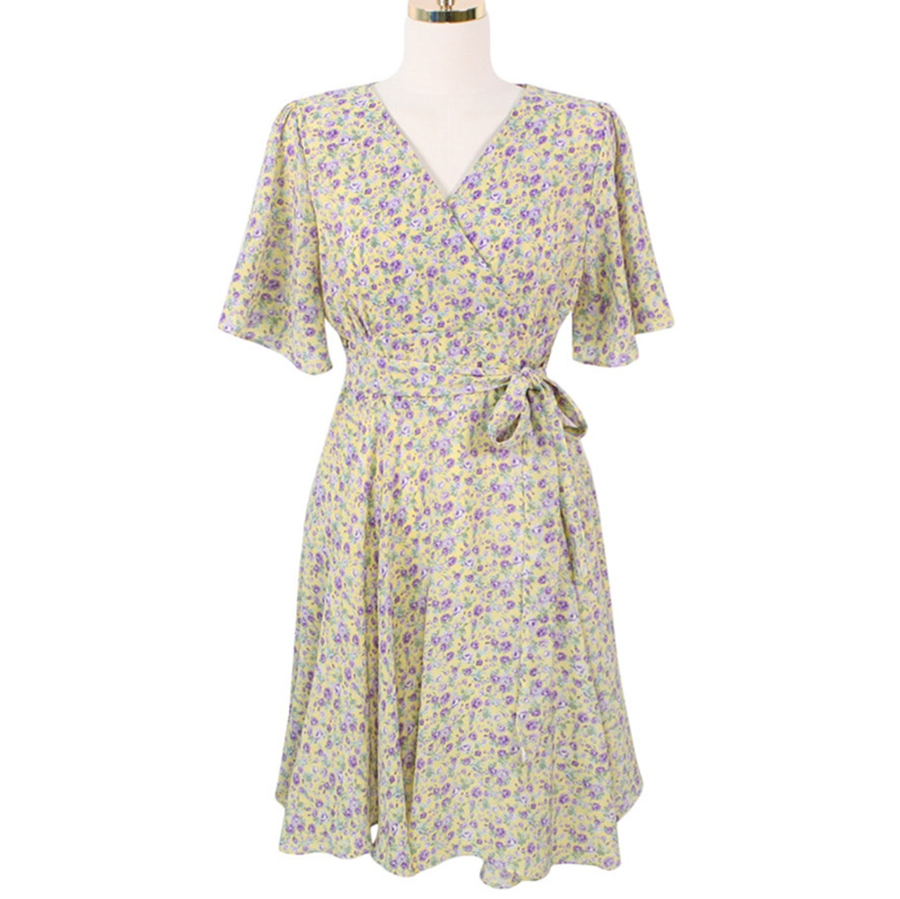 【新作】【送料無料】 バンデージミニフローラルドレスシフォンラインVestidosDe VeranovネックVestidoCorto mal Women Sun Style Jurkjes 花柄 Aライン Feminine181819111403 | Feminine