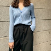 【新作】【送料無料】 FlectitレディースクロップカーディガンセーターフロントボタンVネック長袖シックな秋春リブニットトップス* ロング スプリング 春物 AL Feminine266839525273 | Feminine