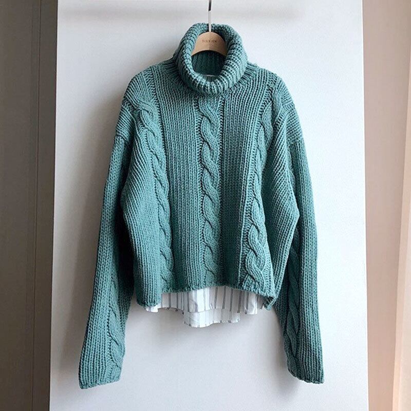 【新作】【送料無料】 ニットの女性ルースタートルネックセーターパッチワークストライプシャツ秋韓国プルオーバーシックレイジーオーフブラウスデフリオフェミニナ フェミニン Feminine120850052919 | Feminine
