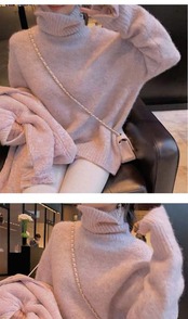 【新作】【送料無料】 プルオーバータートルネックトリコットピンクセーター女性ブラウステルミカスタイルロパインビエルノ2020レイジーオーフフォールホワイトプル Feminine173802809219 | Feminine