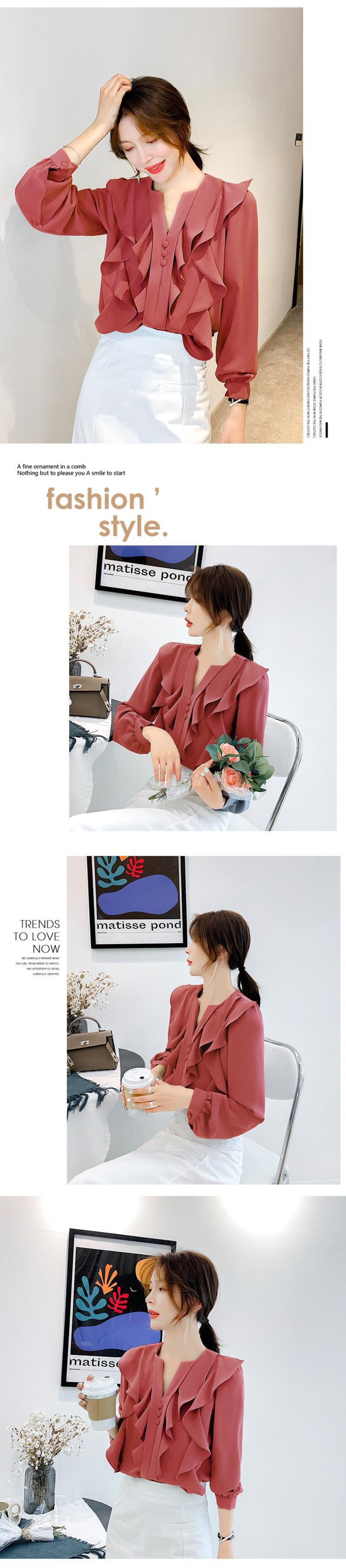 【新作】【送料無料】 シフォンフリルブラウスレディースオフィスvネックシャツ長袖e2020年春カミセタケミシエ ロング スプリング 春物 会社 学校 通勤や通学にも Feminine150603857372 | Feminine