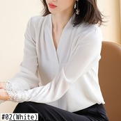 【新作】【送料無料】 FlectitプリーツVネックブラウス刺繍長袖スリムフィットシフォントップスとブラウス女性作業着* ロング レッド AL Feminine286462301023 | Feminine