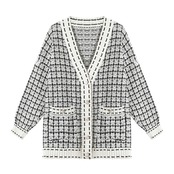 【新作】【送料無料】 チェック柄ニットカーディガンenteritoslargos demujerエレガントセーターvネックシックな韓国スタイルの女性特大の秋の怠惰なオークプル オータム 秋物 Feminine132587213756 | Feminine