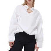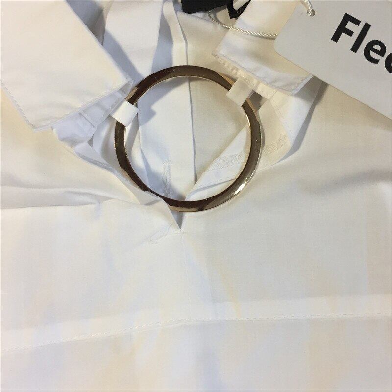 【新作】【送料無料】 Flectitシックな女性ホワイトブラウスゴールドリングポケットボタンダウン長袖特大シャツレディトップスストリート* ロング 指輪 AL Feminine277148622206 | Feminine