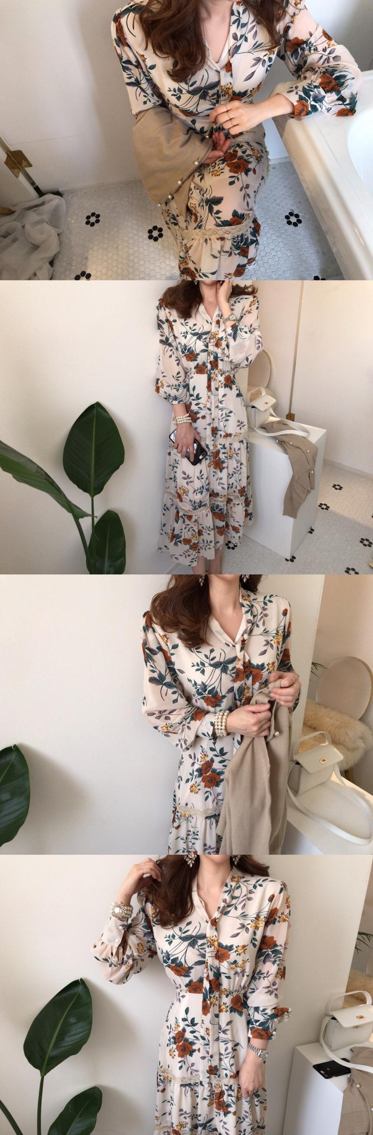 【新作】【送料無料】 自由奔放に生きるシックなシフォン花柄ドレス女性マキシスプライスレースライン長袖黒Vestidoブランコビーチ春Vestidoses ロング ブラック スプリング 春物 Aライン Feminine116063806011 | Feminine