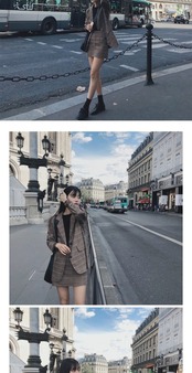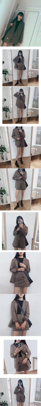 【新作】【送料無料】 チェック柄プリントツーピースブレザースカートセットヴィンテージオータムジャケットレディーススタイルテルノフェミニノベテメントロパ 秋物 ビンテージ Feminine179320586563 | Feminine