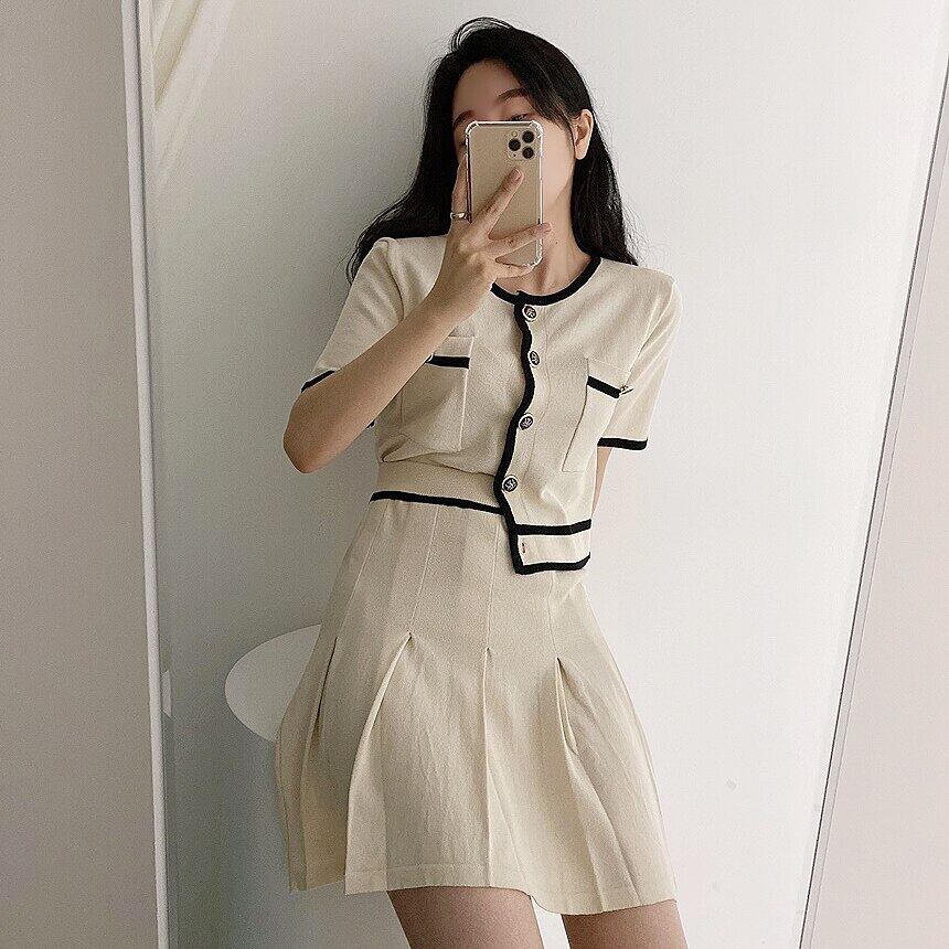 【新作】【送料無料】 2ピースニットセット女性スカートクロップドカーディガンショートセット女性2コンプレットダムスキーラト服ニット秋の服 Feminine19733607433