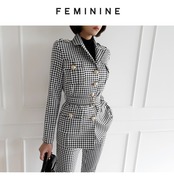 【新作】【送料無料】 秋冬の女性千鳥格子セットパンツマッチングパンツシングルブレストオフィスウエストスーツツーピース衣装 オータム 秋物 ウィンター 冬物 会社 学校 通勤や通学にも AL Feminine235330961792 | Feminine