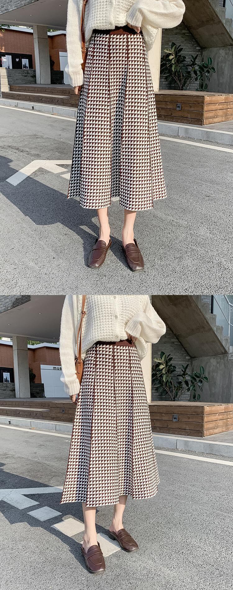 【新作】【送料無料】 SMTHMA厚手の暖かい女性プリーツスカートウエストニットジオメトリ秋冬ロングAラインセーターファルダス オータム 秋物 ウィンター 冬物 AL Feminine232294665365 | Feminine