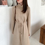 【新作】【送料無料】 SMTHMA2020冬の女性ロングニットマキシドレス縦縞ストレートタートルネックプルオーバードローイングミディヴェスティドダフェスタ ウィンター 冬物 ストライプ AL Feminine229582125528 | Feminine